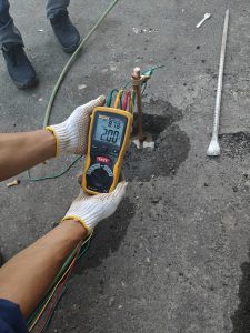 Dalam pelaksanaannya, tim melakukan evaluasi kondisi grounding eksisting, pengukuran tahanan pembumian, serta perbaikan pada sistem yang tidak memenuhi nilai standar. Proses repair meliputi penambahan elektroda grounding, perbaikan koneksi, hingga optimalisasi sistem agar nilai tahanan pembumian sesuai dengan ketentuan keselamatan.