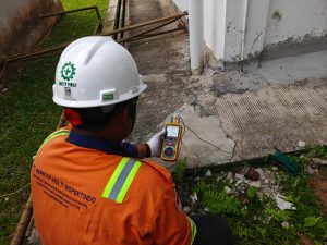Dalam pekerjaan ini, tim BMI melakukan pemeriksaan menyeluruh terhadap seluruh komponen sistem penyalur petir, termasuk terminasi udara (air terminal), konduktor penyalur, hingga sistem pembumian (grounding). Selain itu, dilakukan juga pengukuran tahanan pembumian guna memastikan nilai resistansi memenuhi standar yang dipersyaratkan.